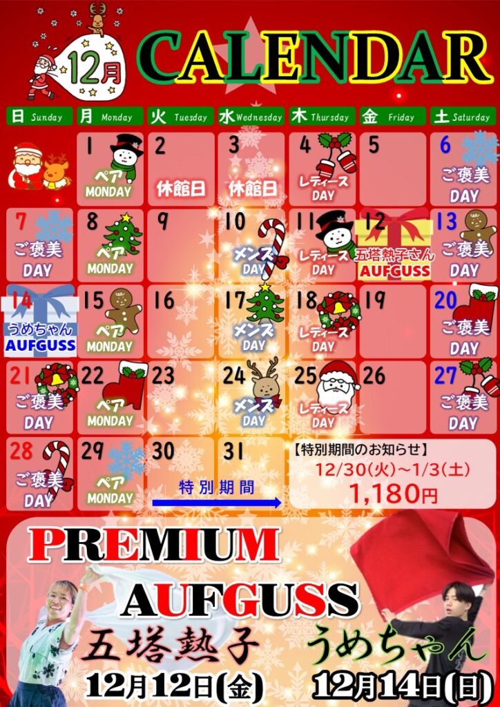 スパシーレ祇園の12月のイベントカレンダーが完成いたしました😋😋
